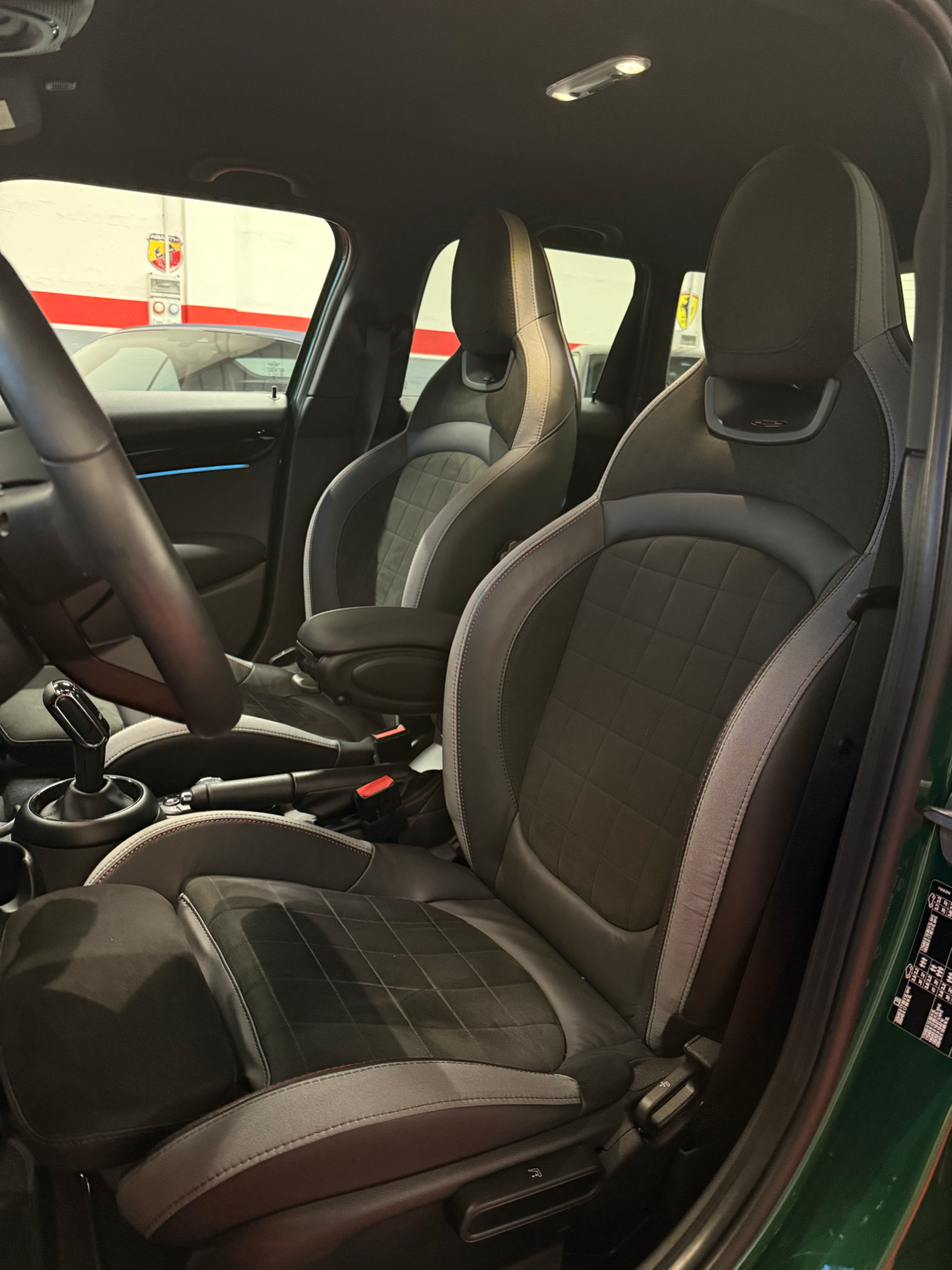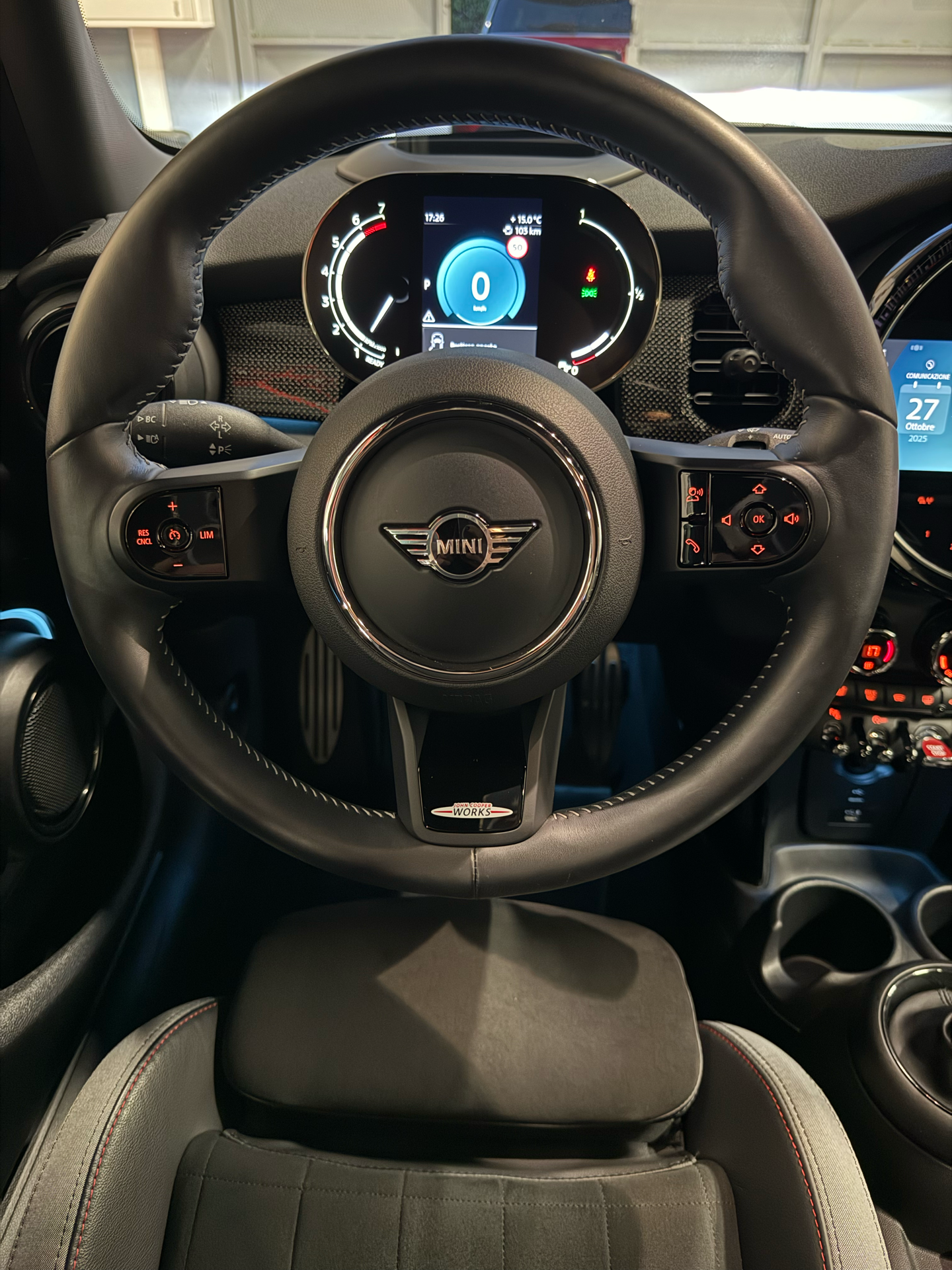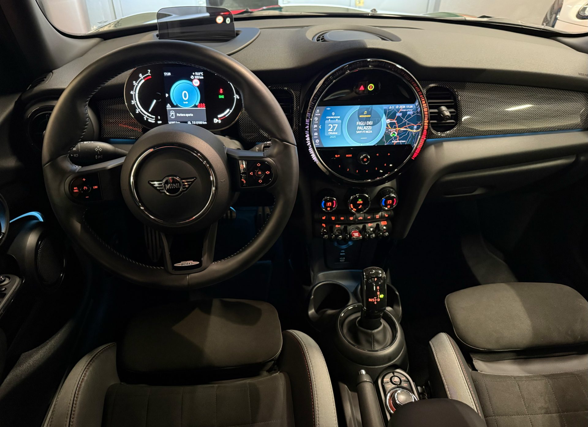 Interno JCW premium con selleria a guscio in pelle e alcantara